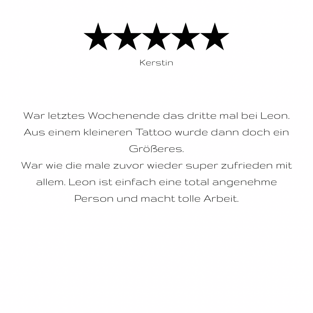 Trotz seiner noch vergleichsweise kurzen Erfahrung hat Leon auf Tattoo-Conventions bereits beachtliche Preise gewonnen. Vom 1. bis zum 3. Platz war alles dabei, und er hat die Jury immer wieder überzeugt. Leon begeistert damit nicht nur seine Kunden, sondern zeigt auch auf professionellen Wettbewerben sein Können. Voller Ehrgeiz strebt er danach, in Zukunft noch weitere Auszeichnungen zu gewinnen.