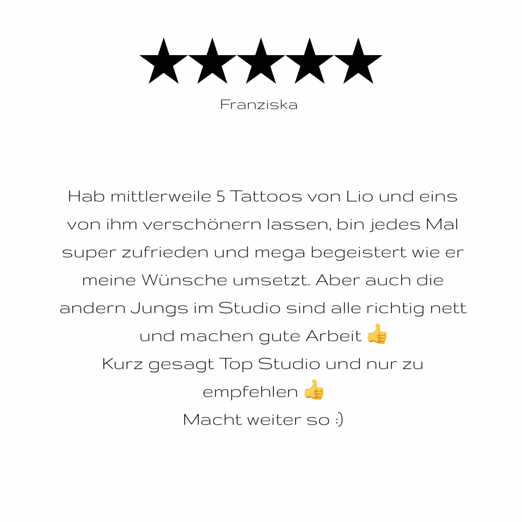 Lio ist das Herz und der Kopf des Teams – ein wahrer Allrounder, der jedes Motiv mit beeindruckender Leidenschaft und absoluter Präzision zum Leben erweckt. Seine außergewöhnliche Kreativität kennt keine Grenzen und spiegelt sich in jedem einzelnen Design wider. Für ihn steht der Kunde immer im Mittelpunkt: Mit Geduld, Feingefühl und einem unermüdlichen Arbeitseifer setzt er alles daran, individuelle Wünsche perfekt umzusetzen. Ob filigrane Details oder ausdrucksstarke Kunstwerke – Lio schafft es, jede Idee in ein einzigartiges Meisterwerk zu verwandeln.